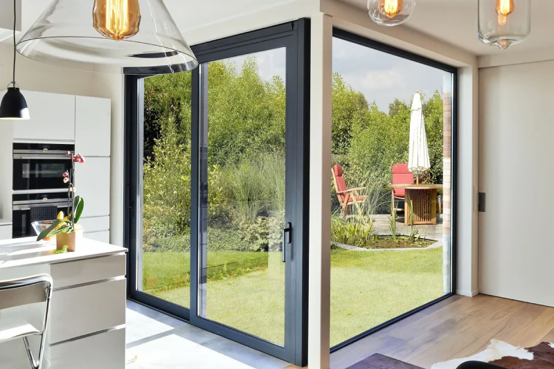 These broad doors, which let in a lot of light, create a great connection between the inside and outside. They keep families secure, don’t break easily, and help block off sounds from outside while still letting you see well.