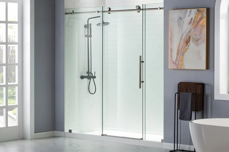 Tempered glass sliding shower doors solve space constraints elegantly. When your bathroom layout doesn’t accommodate a door that swings outward, sliding panels glide along tracks to provide access without requiring clearance space. They’re particularly practical for tub-shower combinations or narrow bathrooms where every inch matters.